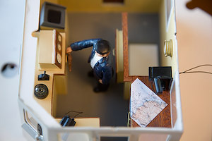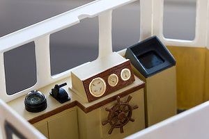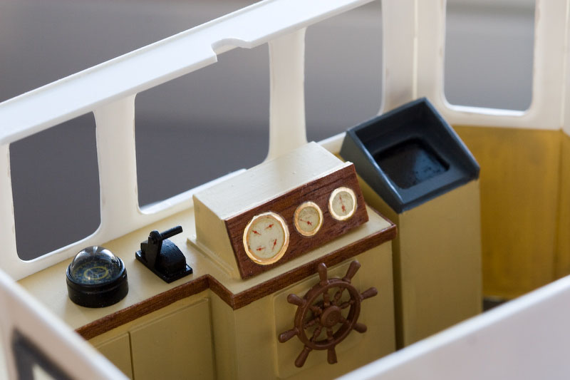 Seuraavaksi pari sisäkuvaa ruorihytistä, joka alkaa jo olla valmis. Mahonkiviimeistely ja muu detaljiikka on itse lisättyä, eikä tule